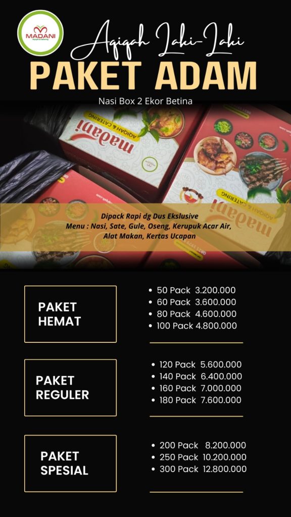 Fokus memberikan layanan terbaik di bisnis Aqiqah & Catering sejak tahun 2014. Telah melayani kebutuhan masyarakat dalam menunaikan Aqiqah, Qurban & Catering di Wilayah Priangan dan kota-kota lain yg terus bertumbuh, (Tasikmalaya, Garut, Ciamis, Banjar, Pangandaran, Bandung, Purwakarta, Cirebon, Kuningan, Indramayu, dan Majalengka) serta bersinergi di 39 kota lain di jaringan Asosiasi Pengusaha Aqiqah Indonesia (ASPAQIN) dan Jasa Aqiqah Terdekat Nusantara.